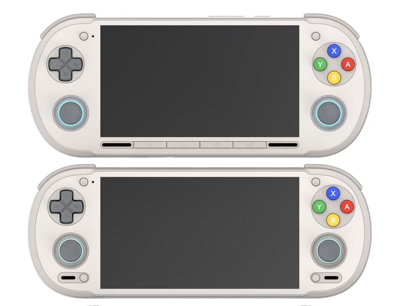 从修改后的设计图可以看出,它没有了屏幕正下方的用户可编程按键和扬声器。Retroid 表示,可编程的 M1 和 M2 按钮现在位于背面(图片中看不到),而主页和返回按钮现在分别位于左右扬声器的旁边。扬声器现在位于拇指杆的下方,但缝隙较小,与 Retroid Pocket 5(亚马逊售价 259 美元)的设计相似。不过,Retroid 表示屏幕尺寸保持不变。