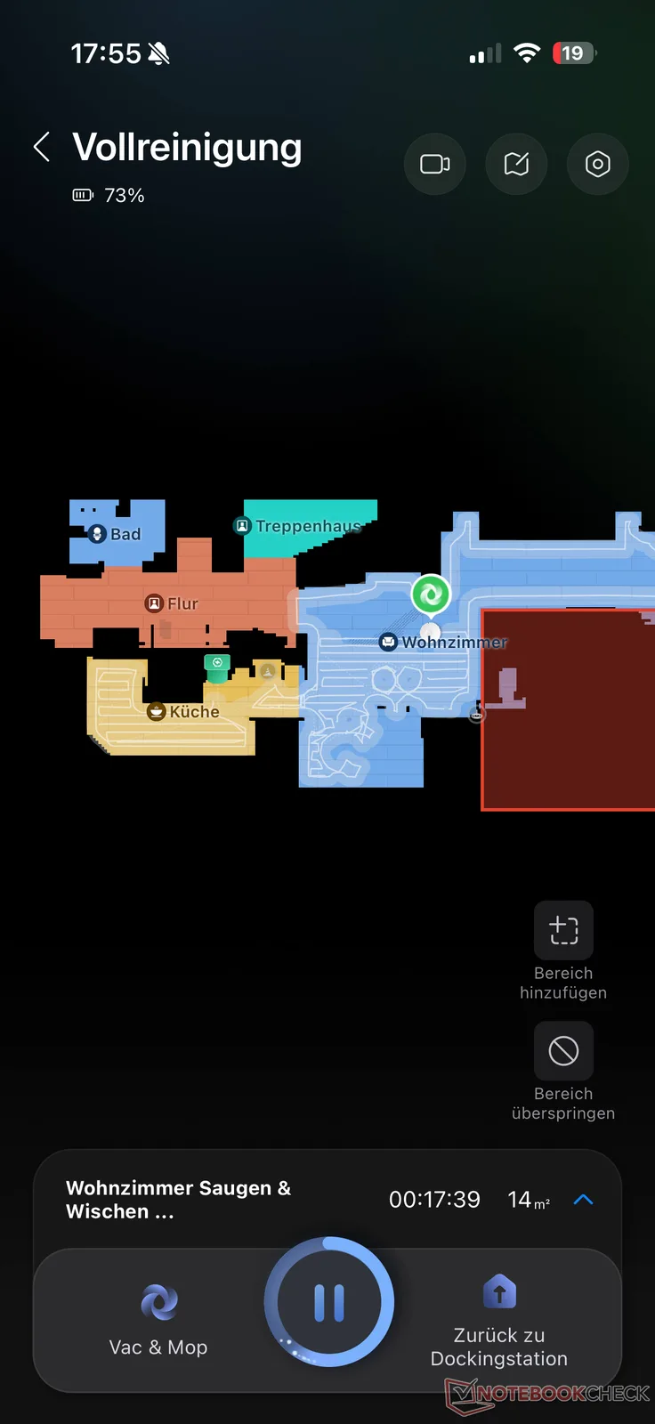 现在我们来谈谈擦拭性能。在测试中,由于使用了温水,它的擦拭性能非常稳定,但在我们看来,它无法与带有拖把滚筒的现代拖把相比,例如 Dreame Aqua10 超级滚筒拖把.其性能足以满足常规拖地的需要。不过,对于顽固或粘性污垢,吸尘拖地机器人的性能就会达到极限。