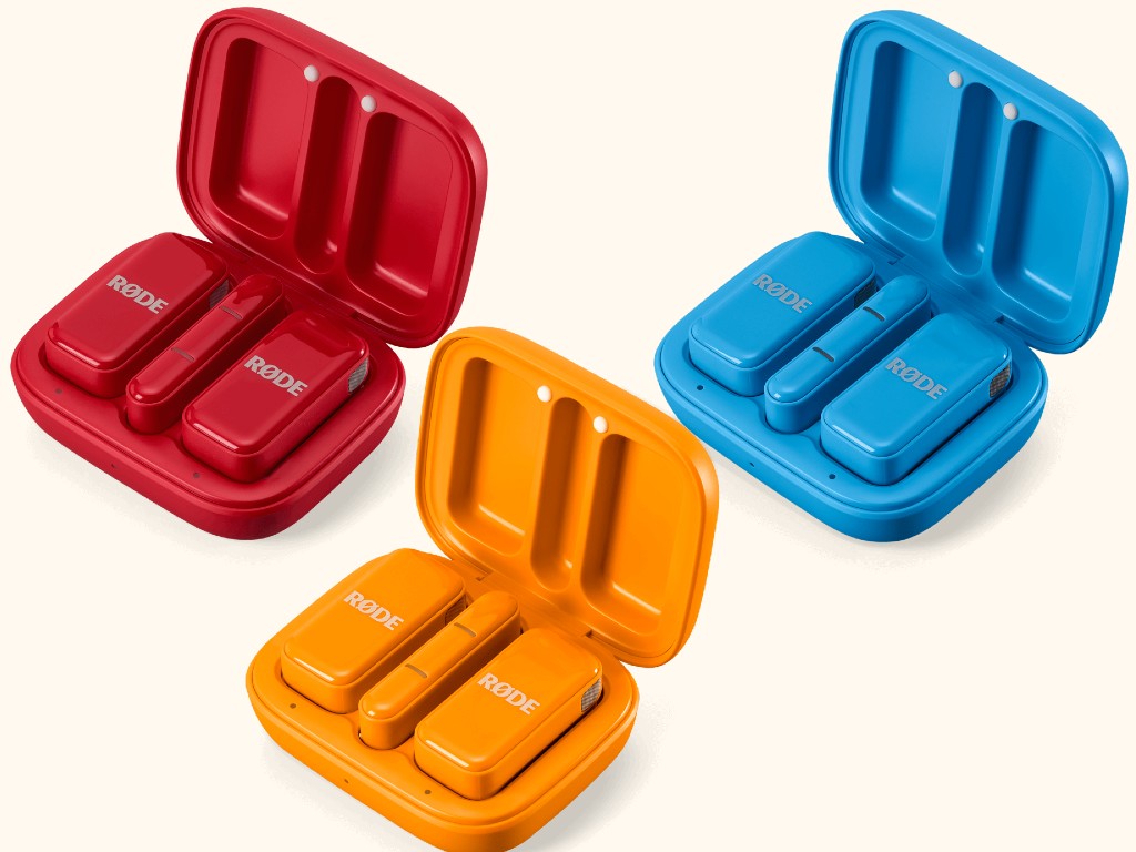Røde Wireless Micro 现在有大胆的红色、酷炫的蓝色和类似迈凯轮的亮橙色可供选择。这三种颜色都配有配套的充电盒和毛茸茸的挡风玻璃。不过,与黑色和白色有 USB-C 或Lightning 两种选择不同,新颜色的接收器只有 USB-C 接口。