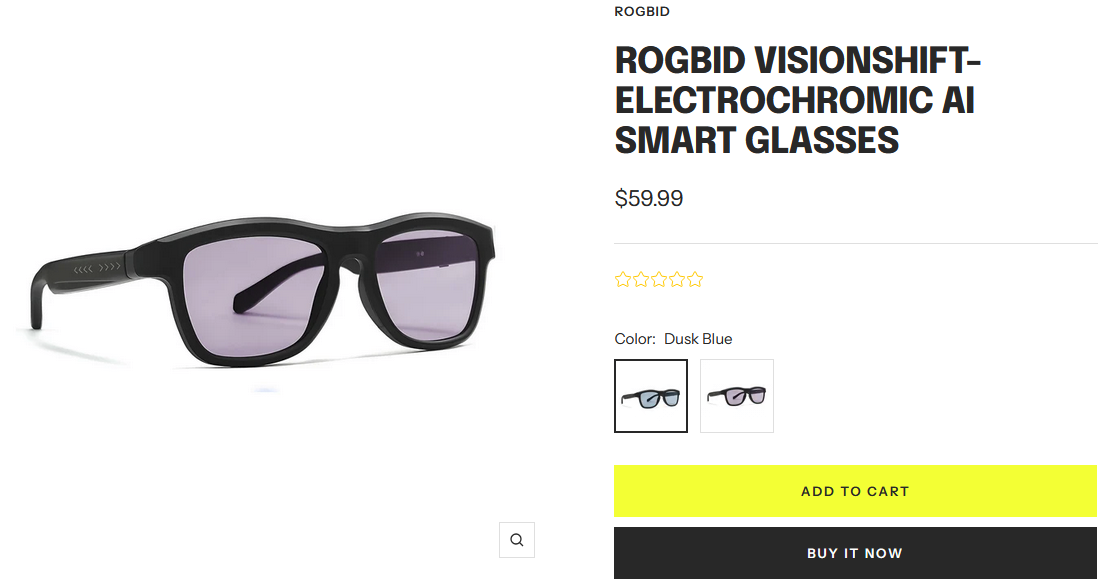 罗格比德发布了最新款智能可穿戴设备 VisionShift,这也是该品牌首款配备电致变色镜片的产品。这是该公司继VisionAI 智能眼镜之后推出的又一款智能穿戴设备。.VisionShift 将自适应镜片与用于实时翻译、聊天和录音的内置人工智能工具相结合,进一步推进了这一理念。