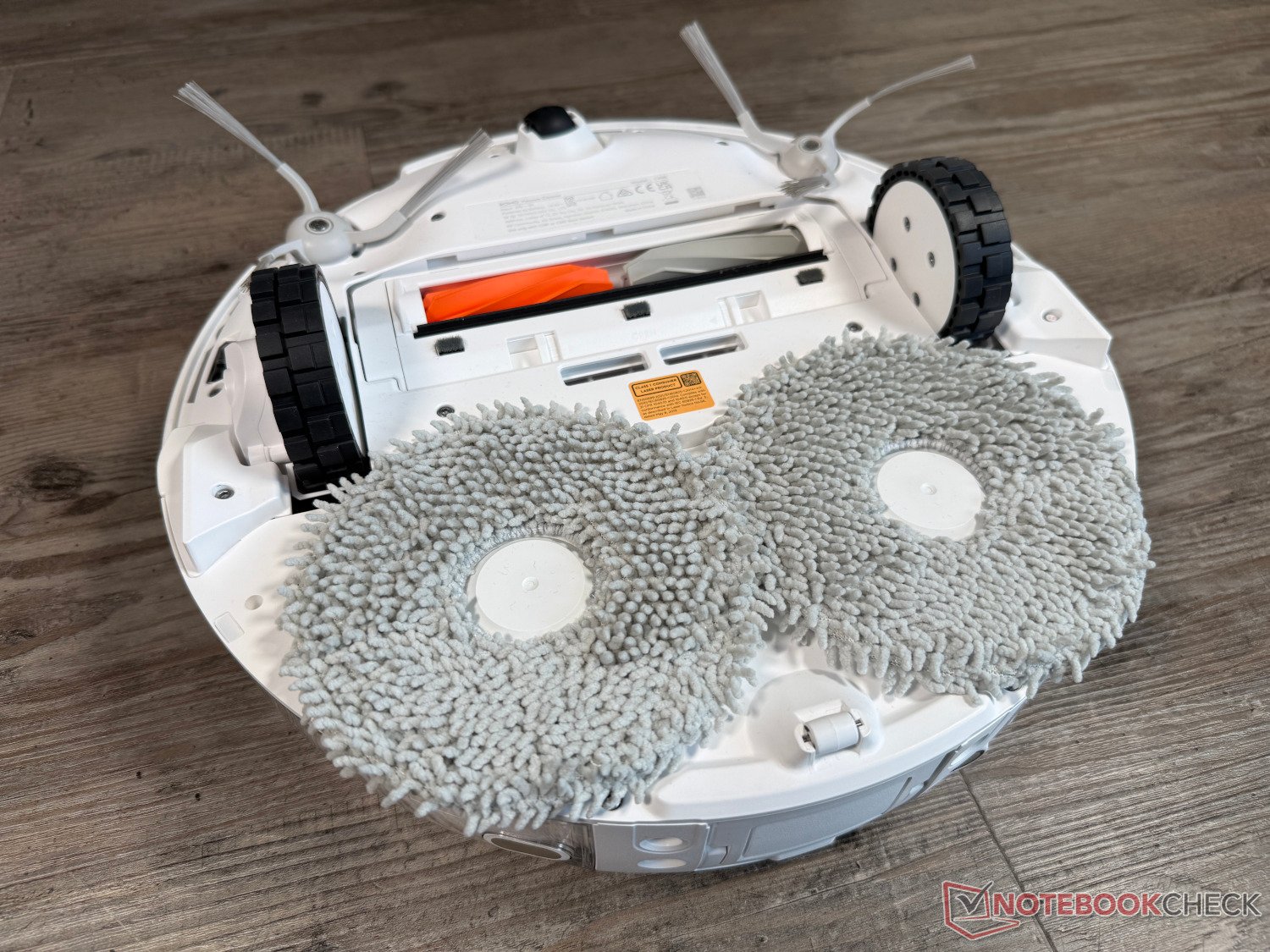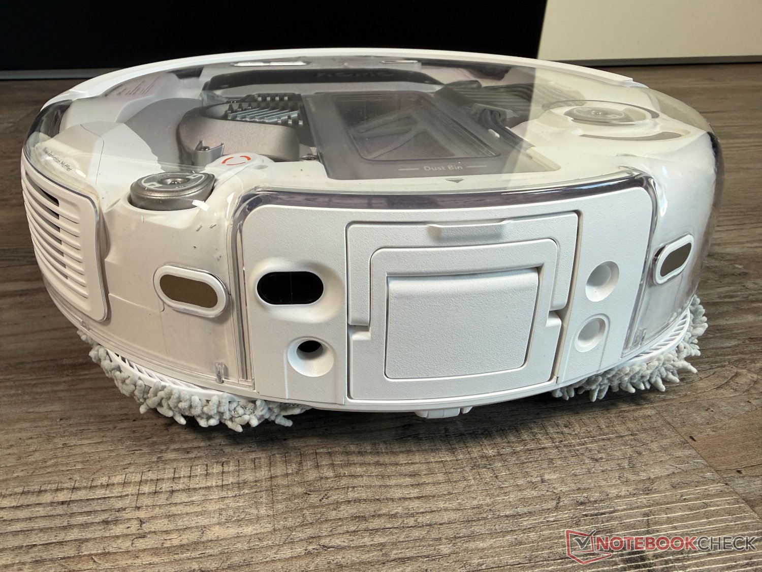 25,000 Pa 的吸力虽然不能与其他旗舰机型相提并论,但也非常强劲。制造商将两个清扫面积较大的边刷结合在一起,其中一个边刷可以加长,用于清扫角落和边缘。机器人后部的两个旋转式蓬松拖把中的一个也是如此,164 毫升的水箱使拖把始终保持湿润。滚刷分为两部分,以防止毛发缠绕。一共有两个:一个带毛刷和橡胶,适用于地毯和脏污严重的地板;另一个橡胶滚刷适用于长毛和动物皮毛。