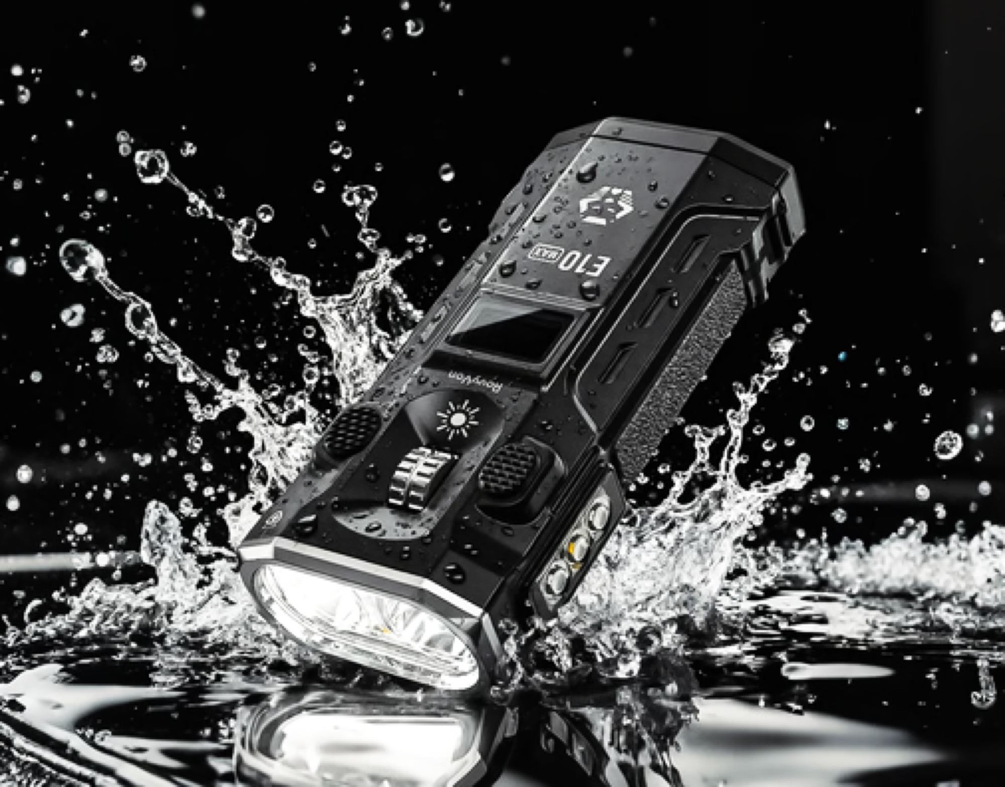 RovyVon E10 是一款新型 EDC(日常携带)手电筒,目前正在进行众筹。它的尺寸仅为 3.8 x 2.9 x 8.2 厘米,小巧得足以放进口袋。其外壳通过了 IP67 认证,这意味着它甚至可以承受掉入水中的冲击。一个小巧的黑白 OLED 显示屏可显示所选亮度级别和剩余电量。