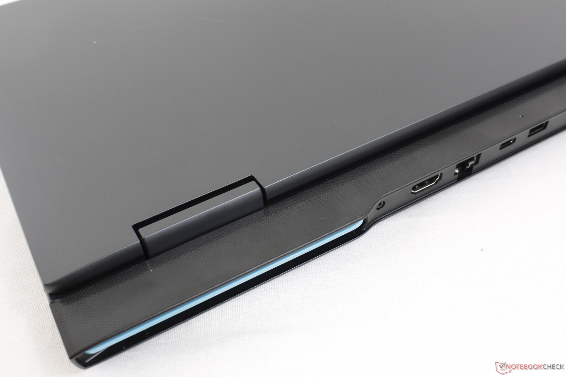 底座周围的底盘刚性相当好,因为相对于其他廉价的游戏笔记本电脑,如微星GF63或或的扭曲和凹陷是最小的。 HPPavilion Gaming 15.然而,铰链是一个不同的故事,因为在调整角度时,显示器往往比我们想要的更容易摇晃。当显示器被完全打开时,吱吱作响的声音变得可闻,这可能是几年后的一个潜在问题。