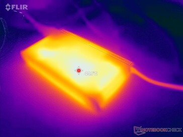 (-) The maximum temperature on the upper side is 47.6 °C / 118 F, compared to the average of 40.4 °C / 105 F, ranging from 21.2 to 68.8 °C for the class Gaming.