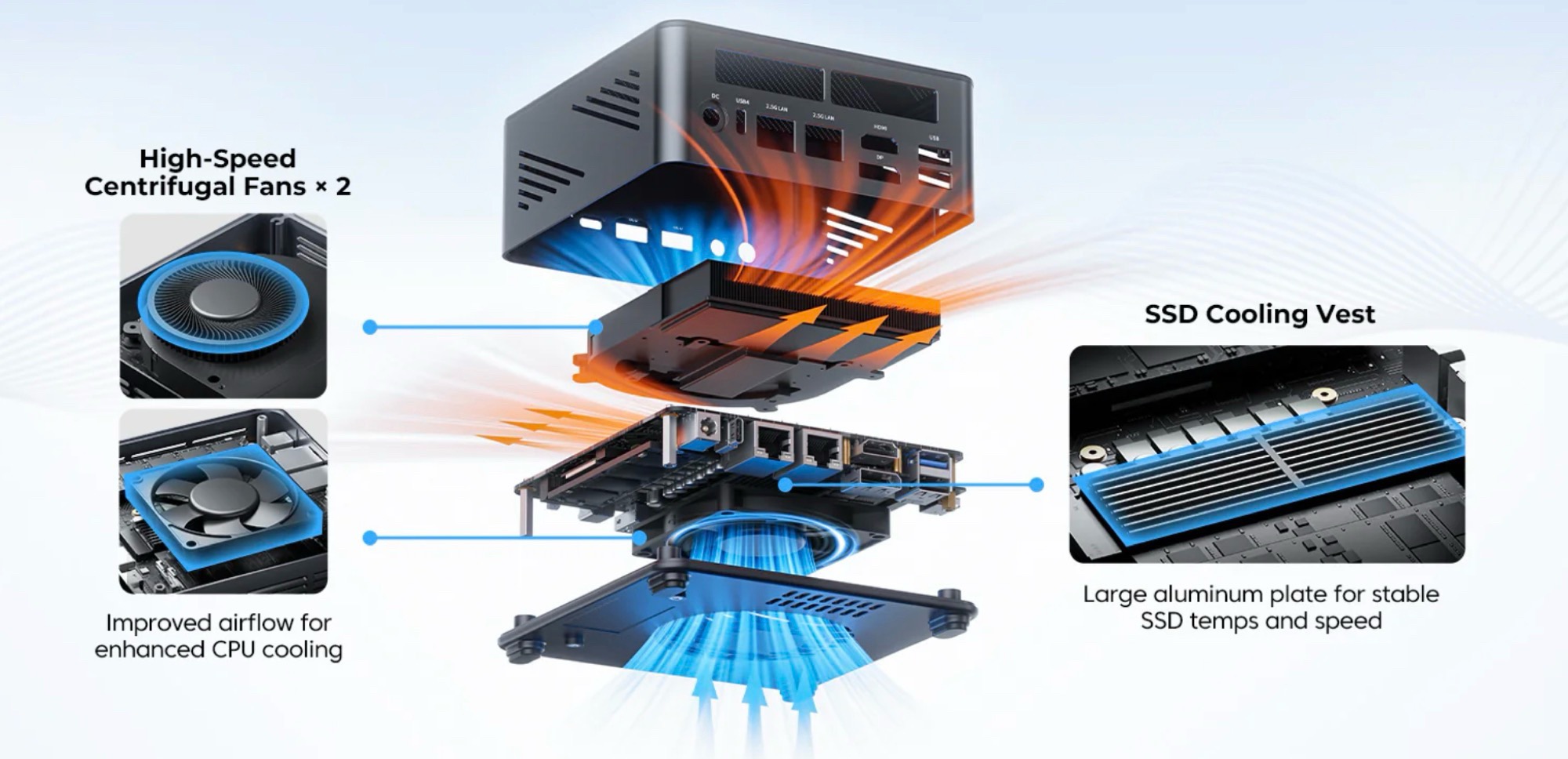 迷你 PC 配备了两个 USB-C 端口(包括支持 USB 4(40 Gbit/s))、四个 USB-A 端口、两个 2.5 Gbit/s 以太网端口、HDMI 2.1、DisplayPort 2.1、Wi-Fi 7 和蓝牙 5.4,可提供丰富的连接功能。该迷你 PC 可同时操作四台 8K 显示器。内存可通过两个 PCIe 4.0 SSD 的 M.2 插槽进行扩展。Acemagic F5A mini PC 正式兼容 Windows 11 和 Ubuntu Linux。