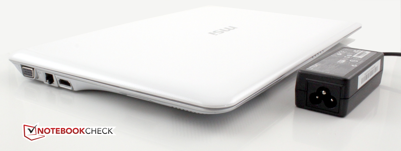 亚笔记本的外壳采用光泽的白色塑料。盖设有一个别致的格局小,重量轻的灰色圆圈。微星标志的中心是强调银。盖体产生的压力下和经纱容易。该材料是如此之薄,它的光芒,通过从里面黑乎乎的内脏,所以屏幕和电缆成为可见。