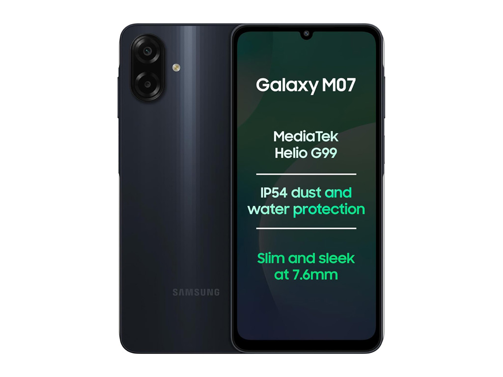 EN→zh-CNThe Samsung Galaxy M07 was announced on October 1, 2025, and released the same day, aiming to offer a budget-friendly option with solid everyday performance. It comes in a sleek black color, weighing 184 grams and measuring 167.4 x 77.4 x 7.6 mm, making it comfortable to hold. The phone has a glass front with a plastic back and frame, and it carries an IP54 rating, which provides basic dust protection and splash resistance. The phone sports a 6.7-inch PLS LCD display with a 720 x 1600 pixels resolution and around 262 ppi density. While the resolution is modest, the 90Hz refresh rate ensures smooth scrolling and a decent visual experience for daily use. Peak brightness is enough for indoor and moderate outdoor use, though it may struggle under direct sunlight.