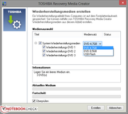Windows 8 (64-bit) is installed on the Satellite C850's hard drive. A Windows 8 DVD is not included. To freshly install the operating system after switching out the hard drive (for instance in favor of a quick SSD), the user will need to run recovery DVDs. To that end, Toshiba included the Recovery Media Creator tool. For those who do not particularly like Windows 8 and would rather install Windows 7, the necessary Windows 7 drivers are available on the Toshiba website.
