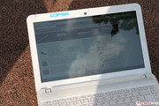 We already mentioned that outdoor use definitely isn't the strong suite of the reflective (glossy) screen. While reflections are already distracting indoors, the panel performs just as expected when taken outdoors: reflections are almost omnipresent, making text hard to read, and almost impossible to decipher when bright objects are reflected off the screen. Under direct sunlight, the situation gets even worse, and our screen is more akin to a portable mirror than a notebook display.