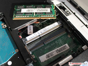 Access to RAM and the 2.5-inch hard disk is just two screws away, which can be undone in under a minute to reveal the components. RAM upgrades are made easy, because only one of the two slots contains a 4 GB module, leaving the other slot free. A replacement of the 2.5" hard disk should cause no trouble either.