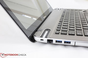 Unfortunately for right-handed users, the video-out and audio ports are located closer to the front of the right-hand edge and can potentially take up valuable desk space if used often. Cables, especially the thick HDMI and VGA cables, will more likely entangle in front of the user instead of on the rear of the notebook. Left-handed users are more in luck as the Ethernet and 2x USB 3.0 ports are relegated towards the back with the non-intrusive optical drive towards the front.