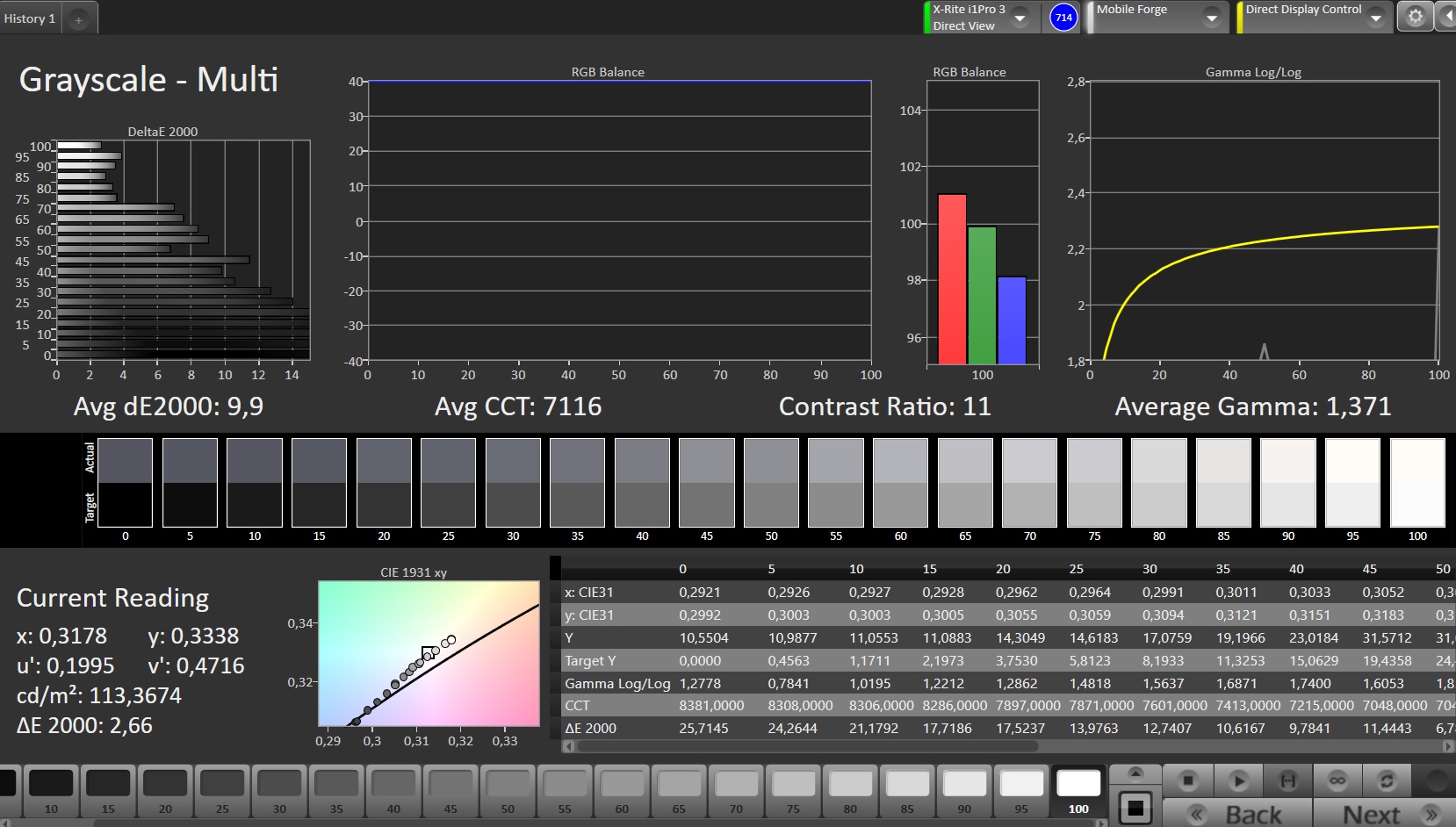 ΔE Greyscale Calman: 9.9 | ∀{0.09-98 Ø5}