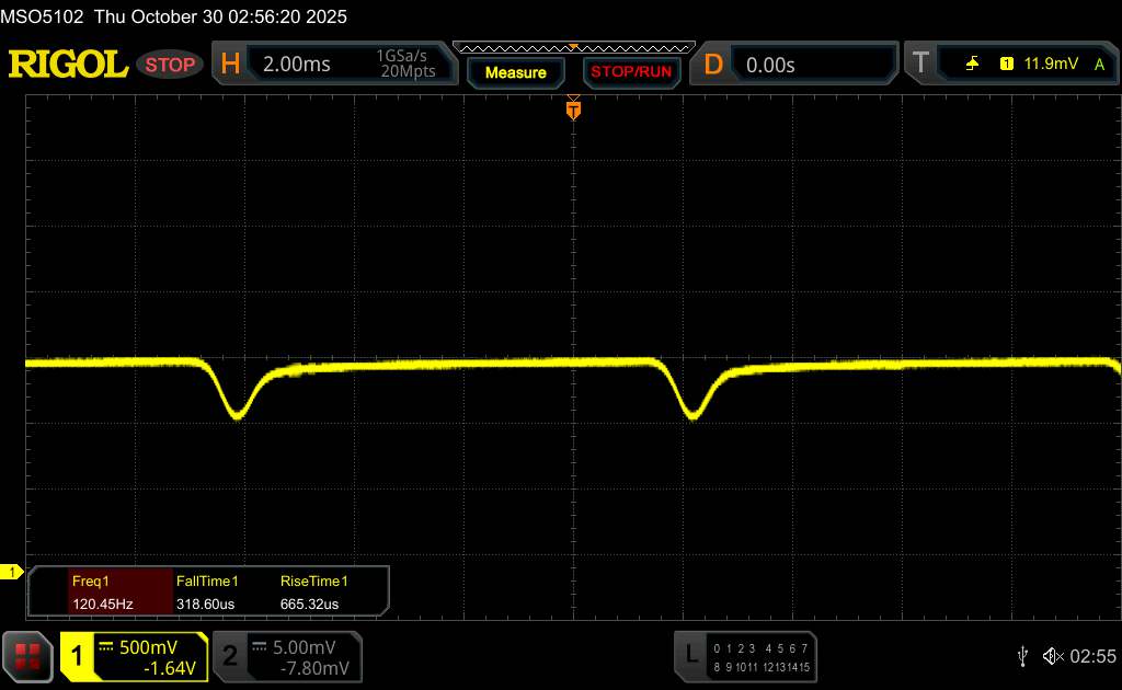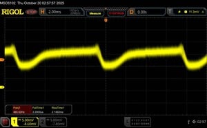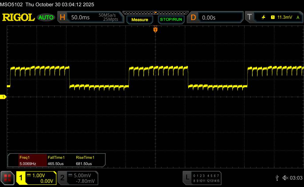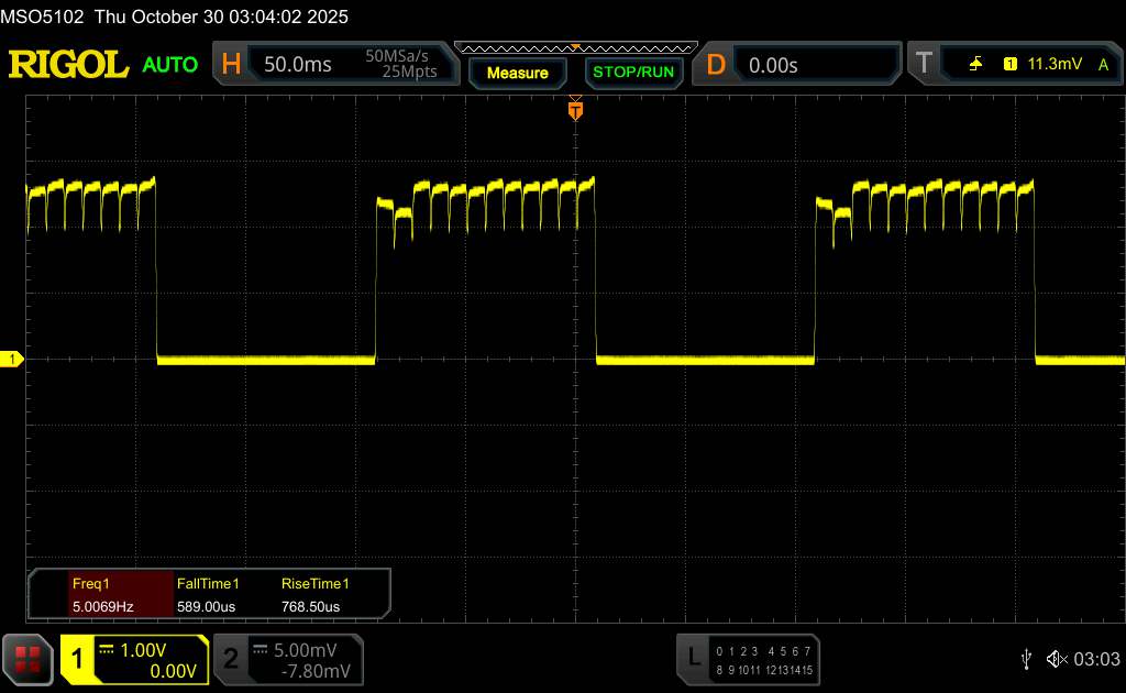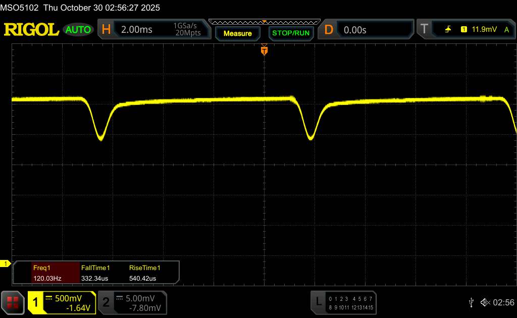 Find X9 Pro 的 OLED 技术使用脉宽调制来控制屏幕亮度。根据制造商的说法,它提供 2,160 Hz 的高频 PWM 调光,从而将闪烁的负面影响降至最低。我们使用 Rigol 软件测量的基本频率为 466 Hz。