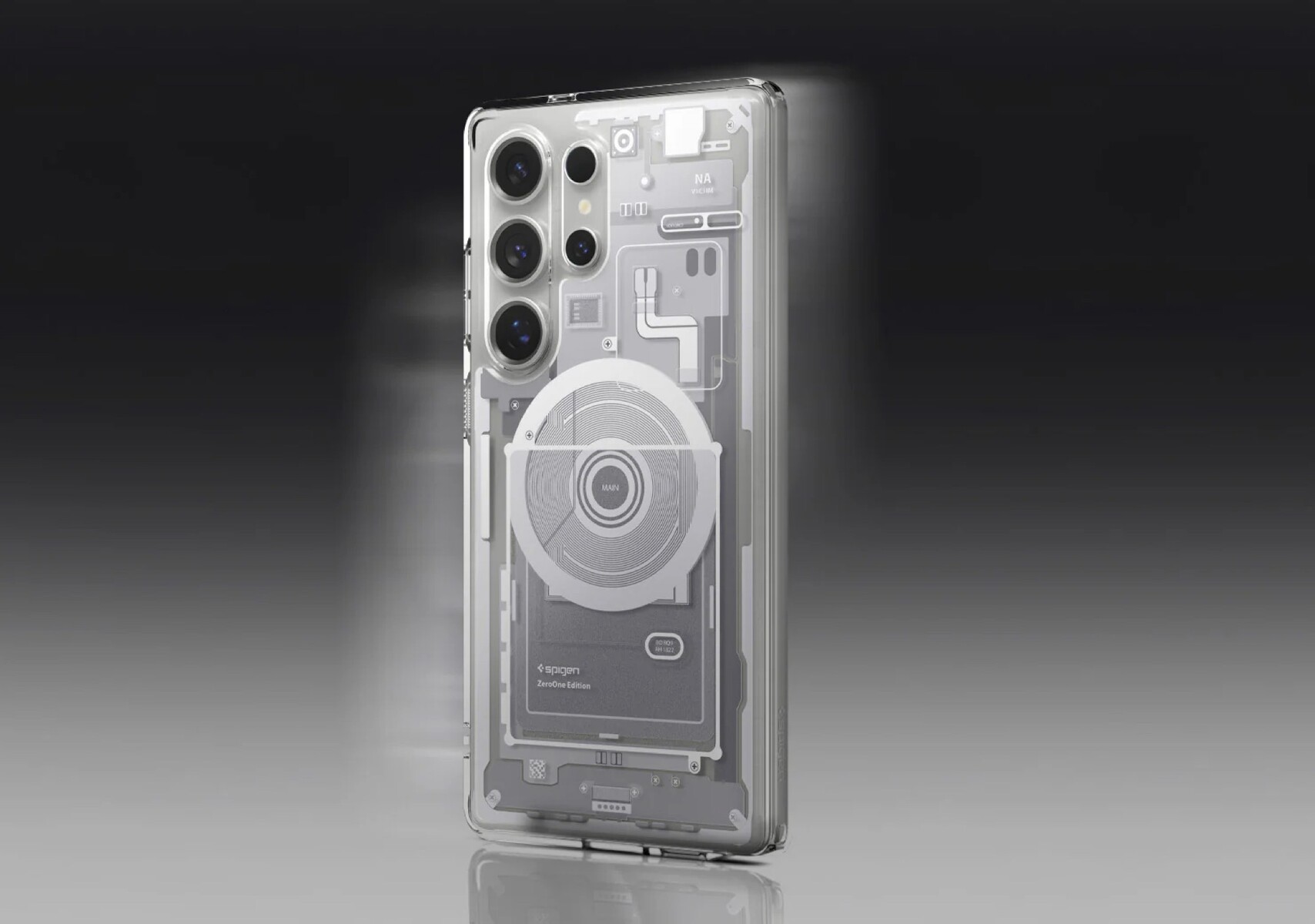 为此,Spigen 现在推出了一系列配备必要磁铁的 "Ultra Hybrid "手机壳。Teardown 系列中的 "Neo One "和 "Zero One "保护套尤其有趣,因为这些保护套上的印花旨在展示智能手机的内部结构。不过,Spigen 采用了非常简化的表现手法,例如,没有刻画散热片或摄像头模块。Neo One 是部分透明的。