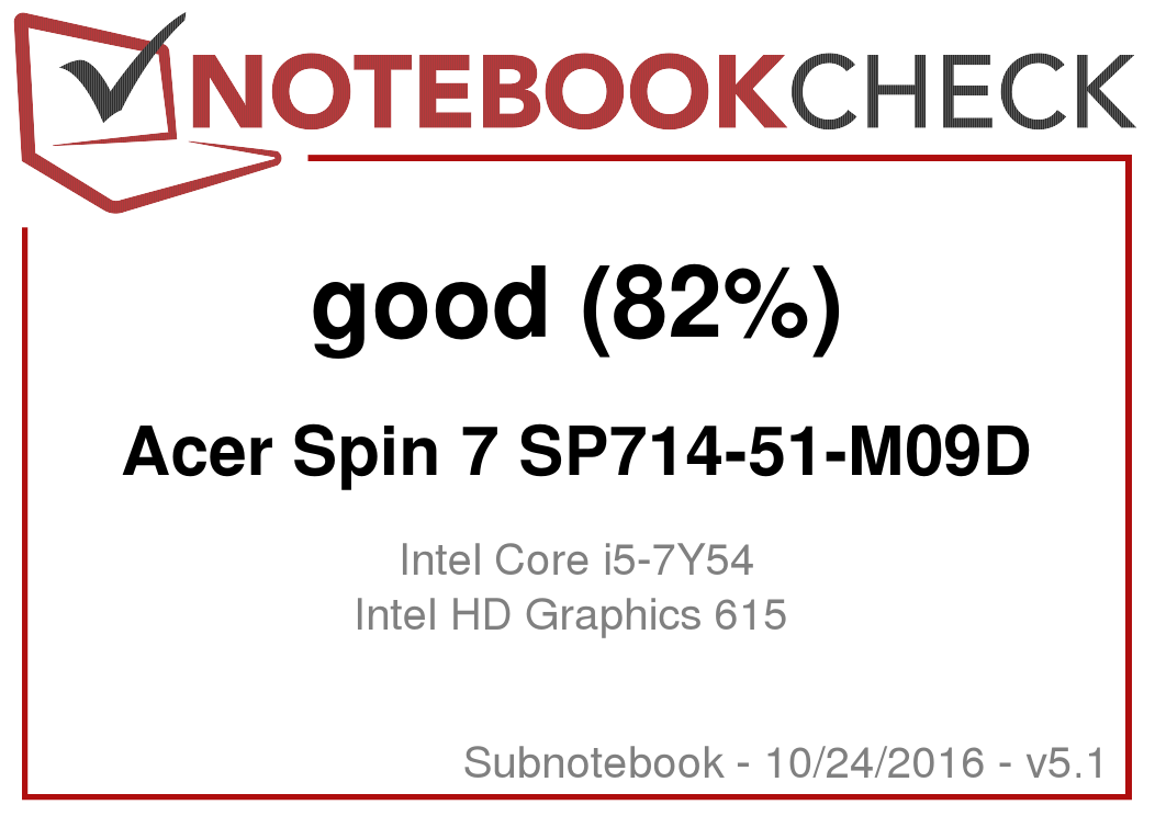 整体上,它是一台很有野心的机器,但在细节的处理上却不尽人意。宏碁 Spin 7 (不带有 "Aspire") 是全新的超薄360度变形本系列。我们所评测的14寸型号 SP714-51-M09D 有一些缺点,来自于它所配备的 Kaby Lake Y 系列 CPU(4.5W TDP),在应用性能上,其上一代 Skylake 处理器有时甚至会有更好的表现。我们对它紧凑而轻便的机身赞许有加,但出色的外观无法掩盖它过薄的底面以及整体外壳稳定性缺失所带来的影响。