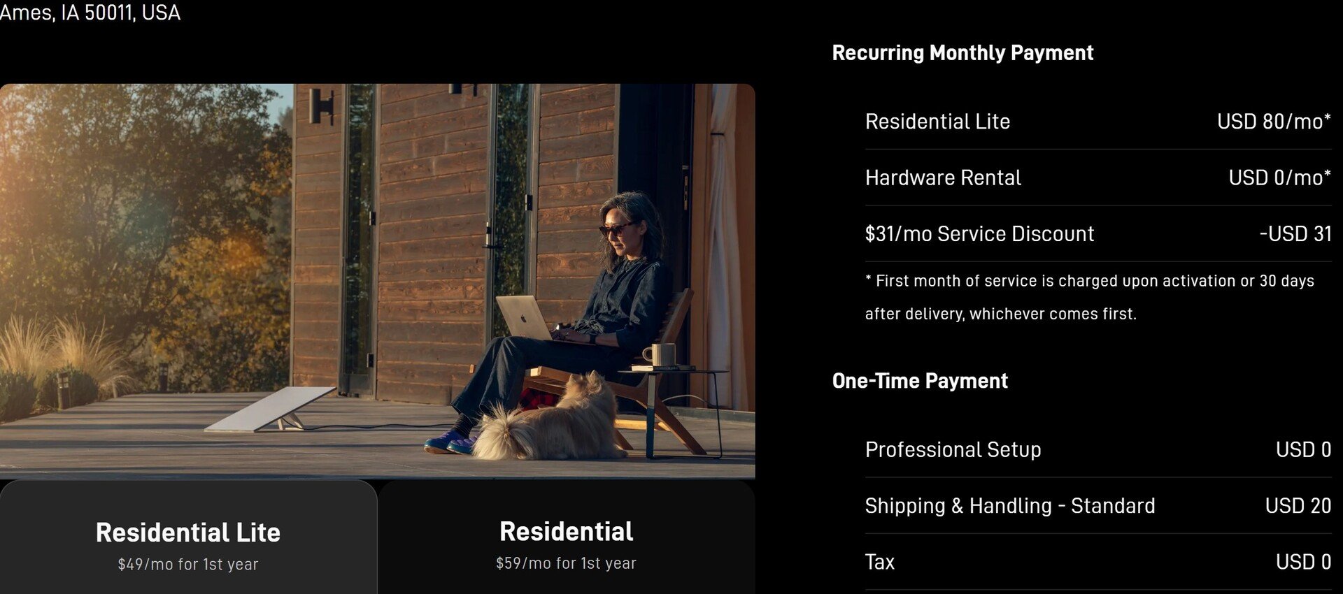 最重要的是,该州的 "住宅简易计划"(Residential Lite plan)进一步打折,每月仅需 49 美元,这使得星联公司成为爱荷华州农村地区潜在用户眼中最具竞争力的互联网服务提供商之一。此外,Starlink 还提供免费安装服务,即技术人员将上门安装天线,并在必要时测试卫星互联网连接。