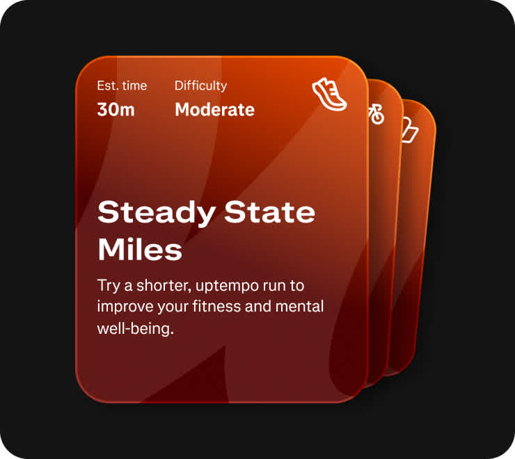 理想情况下,Instant Workouts 的目标是几乎完全减轻运动员的训练计划负担。用户可以选择四种不同的训练模式:构建"、"保持"、"探索 " 和 "恢复"。构建 模式可能包括强度更大的训练,以提高耐力。维持 " 模式旨在保持运动表现,而 "恢复 "模式则适用于已经严重透支或疲劳但仍想进行轻量(再生)训练的用户。探索 模式适用于探索新的运动项目或路线,以克服高原反应或打破可能停滞不前的日常训练。