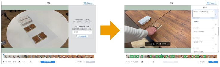 通过自动处理使用 β 版本的公司提出的意见,我们能够缩短为视频设置字幕所需的时间。即使在视频中有音乐或噪音的情况下,字幕和描述也能高度准确。・ 我们原以为无法使用人工智能制作自己的操作手册,但通过设计生成指令,我们制作出了高质量的手册草稿,其中还包括我们自己的操作程序。・ 如果有视频手册的半自动生成功能,就可以制作因修剪和添加字幕麻烦而未开始制作的手册。