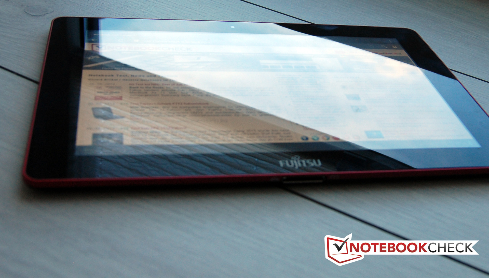 Our lab measurements confirmed our subjective impressions and verified that Fujitsu did not exaggerate. We observed a maximum brightness of 627 cd/m2, over 10 percent higher than the manufacturer’s specification. The average brightness was just under 600 cd/m2. The tablet’s contrast also exceeded specification as we recorded a ratio of 887:1. We also observed an acceptable brightness distribution of 90 percent. The weakness in this regard was the upper right corner’s brightness of 563 cd/m2. However this was not noticeable in practical use. The black value of 0.7 cd/m2 was also good. However, there remains room for improvement in terms of black value as demonstrated by the Asus Transformer Pad Infinity TF700T. But this is a particular picky criticism and should be taken with a grain of salt.