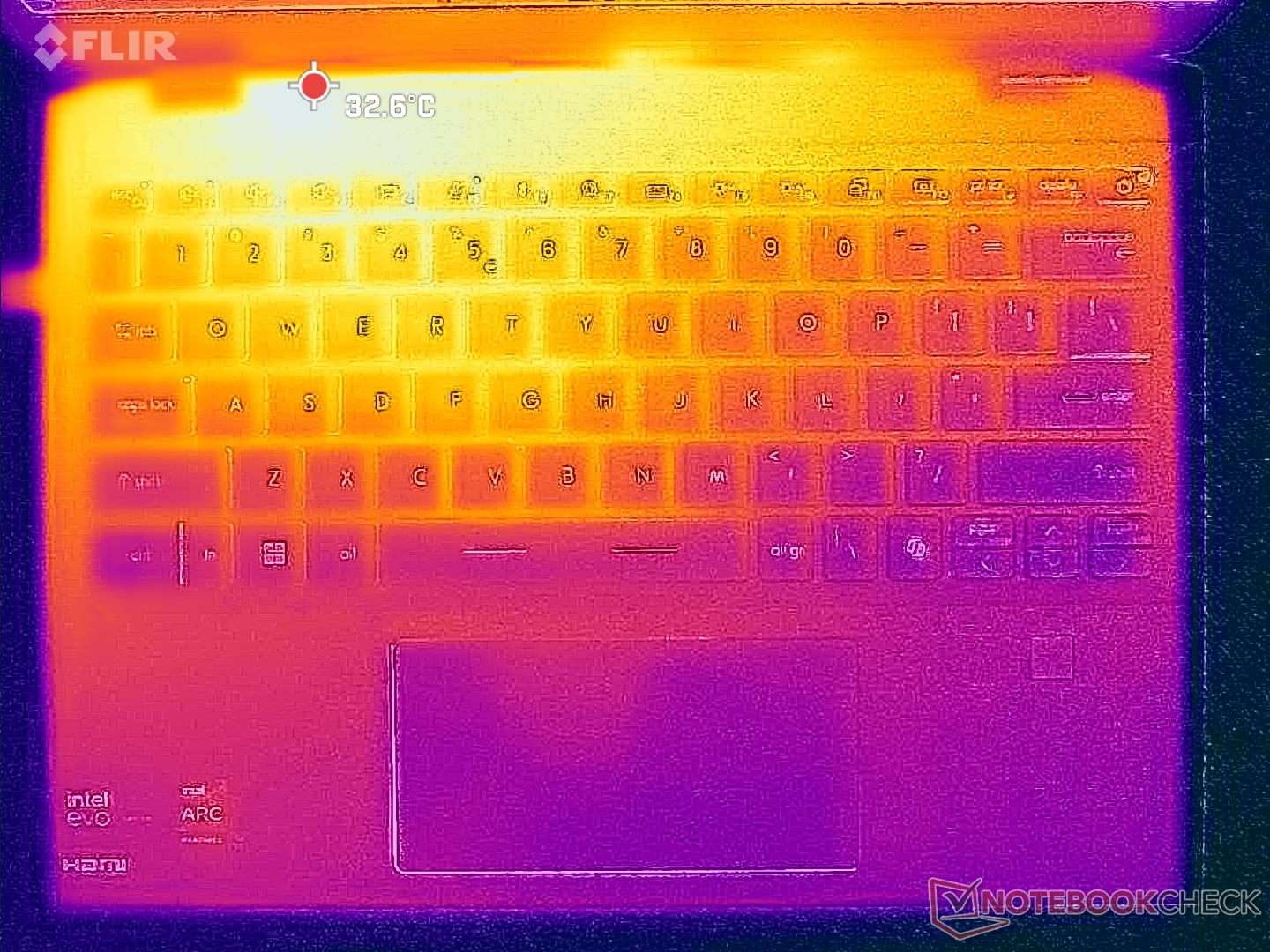 (+) The palmrests and touchpad are cooler than skin temperature with a maximum of 28.8 °C / 83.8 F and are therefore cool to the touch.