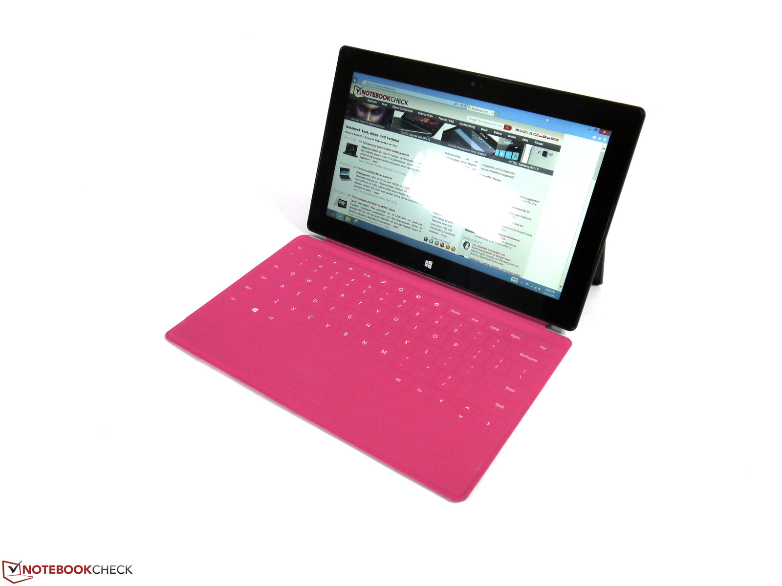 The Touch Cover keyboard which also serves as a protective cover for the display, improves the typing experience considerably when compared to using the on-screen keyboard. On the other hand, the additional weight means that the device is almost as heavy as an Ultrabook and mobility is furthermore hampered by an additional 200 grams.