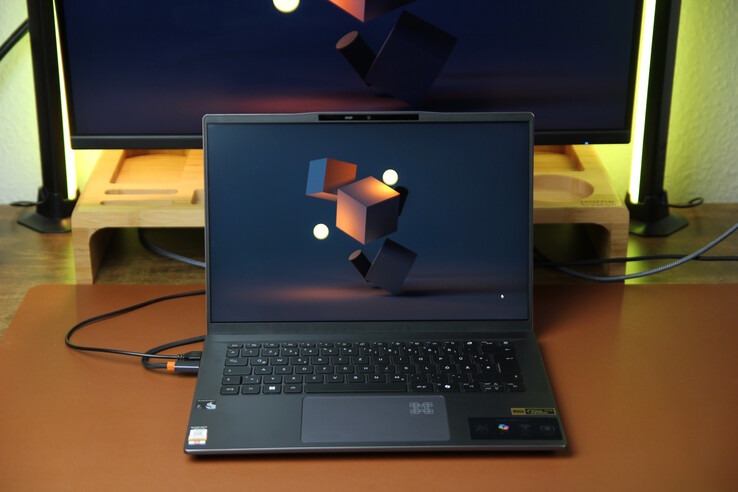 连接方式也发生了变化,但并不一定是为了更好,因为宏碁干脆省略了 HDMI 端口。现在,任何想要连接外部显示器的人都必须直接或通过底座使用 USB-C。前代产品的 Kensington 接口和 MicroSD 卡插槽也已成为历史。至少现在有了网络摄像头快门,还支持 WiFi 7。遗憾的是,没有增加其他端口,因此在这方面前代产品明显领先。新款 Swift Go 比 2023 型号稍大,也稍厚。