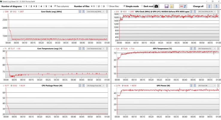 | Acer Swift X SFX14-71G i7-13700H, GeForce RTX 4050 Laptop GPU, Samsung PM9A1 MZVL21T0HCLR, OLED, 2880x1800, 14.5" | Lenovo Yoga Pro 7 14IRH G8 i7-13700H, GeForce RTX 4050 Laptop GPU, Samsung PM9A1 MZVL21T0HCLR, IPS, 3072x1920, 14.5" | Lenovo Slim Pro 7 14ARP8 R7 7735HS, GeForce RTX 3050 6GB Laptop GPU, SK hynix PC801 HFS512GEJ9X115N, IPS, 2560x1600, 14.5" | Gigabyte Aero 14 OLED BMF i7-13700H, GeForce RTX 4050 Laptop GPU, Gigabyte AG470S1TB-SI B10, OLED, 2880x1800, 14" | Schenker Vision 14 2022 RTX 3050 Ti i7-12700H, GeForce RTX 3050 Ti Laptop GPU, Samsung SSD 980 Pro 1TB MZ-V8P1T0BW, IPS, 2880x1800, 14" | Acer Swift X SFX14-51G-5876 i5-1240P, GeForce RTX 3050 4GB Laptop GPU, Micron 3400 MTFDKBA512TFH 512GB, IPS-LED, 2240x1400, 14" | Average NVIDIA GeForce RTX 4050 Laptop GPU | Average of class Multimedia | |