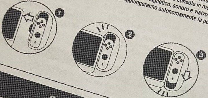 就在不久前,我们报道了一个明显由粉丝制作的任天堂Switch 2的模型。 任天堂Switch 2的模拟图,该模拟图还附有一台Switch 2 Max主机。看来同一消息来源一直在忙于。这次出现的显然是说明书的一部分。图片中的文字是意大利文(与上一张概念图相同),这次的重点是Joy-Con 2而不是NG Switch本身。
