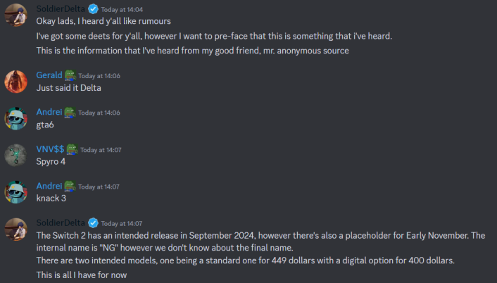 除了提供两个日期外,据说过去曾与知名游戏情报员 "The Snitch "合作过的同一消息来源还声称,Switch 2 将有两种型号:标准版和数字版 任天堂 Switch 2.这位消息人士似乎在任天堂高层有朋友,因为他甚至给出了价格,尽管后来的更新包含了 "价位仍有可能改变 "的安全条款。总之,数字 Switch 2 的售价显然为 400 美元,而标准版游戏机的售价为 449 美元。没有提及使用 OLED 或 OLED 型号,这与 之前的传言Switch 2 将配备 LCD 面板。