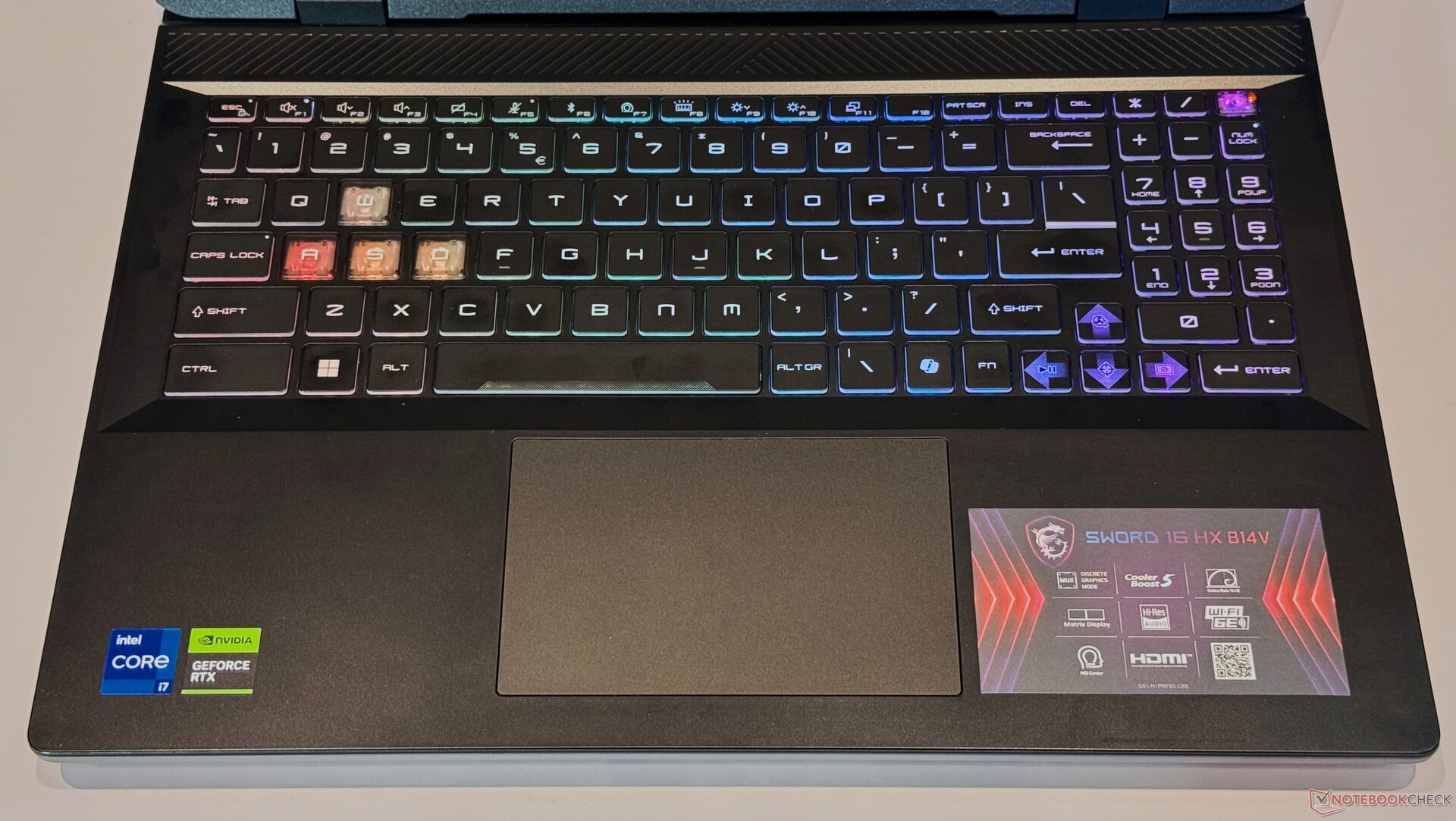 Sword 16 HX 配备了大多数游戏笔记本电脑的标准键盘和触控板。