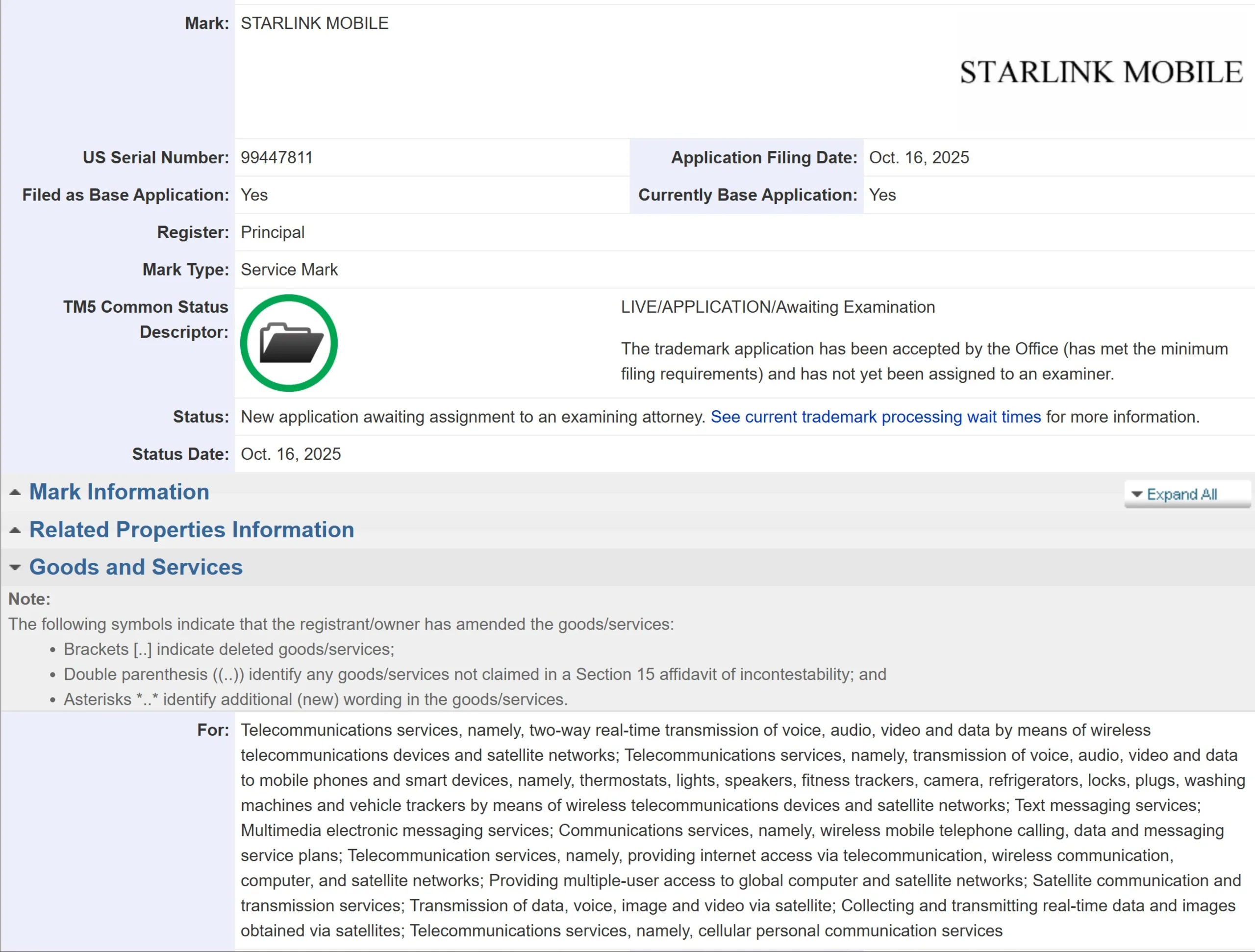 为了将这一愿景变为现实,SpaceX 现已向美国专利商标局申请了 Starlink Mobile 的名称,新品牌的服务范围听起来疑似一家新手机运营商的诞生,只是从太空而非地面基站传输语音和数据: