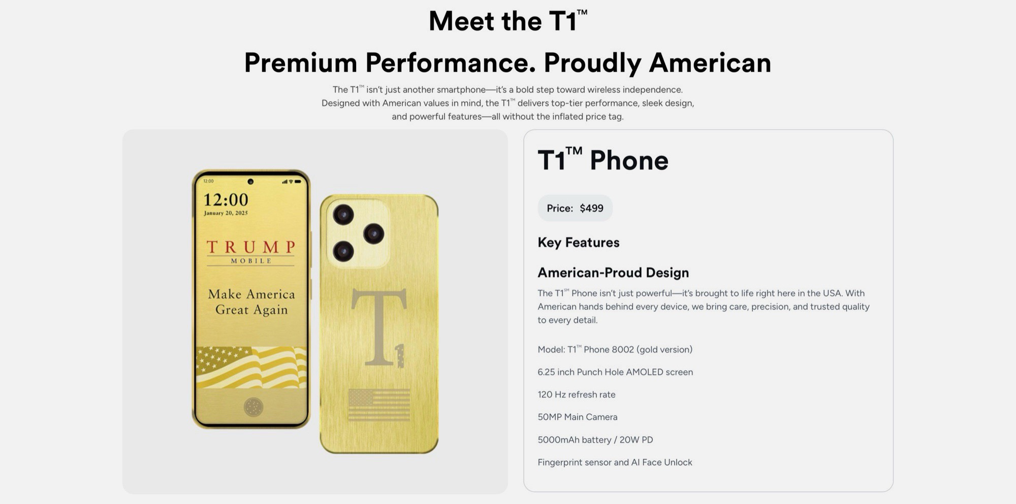 特朗普 T1 手机:制造商公布最终设计,证明规格和价格不准确