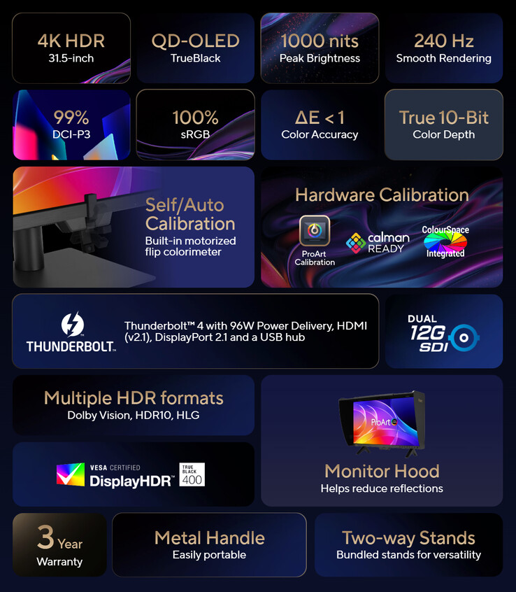 华硕推出配备 TB4 和 12G-SDI 的新型 240 Hz 专业 OLED 显示器