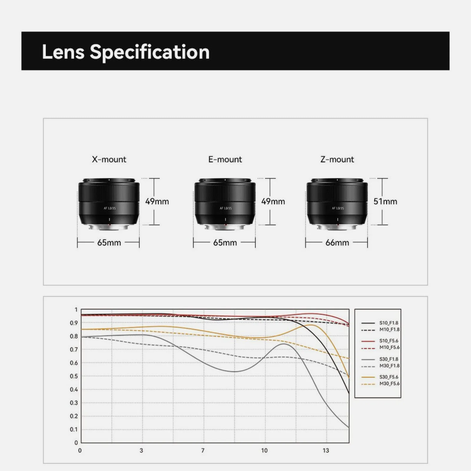 该镜头适用于索尼 E 卡口和富士 X 卡口相机,黑色和银色型号也适用于尼康 Z 卡口相机。无论如何,该镜头只适用于配备 APS-C 传感器的相机,因为它不能完全覆盖全画幅传感器。