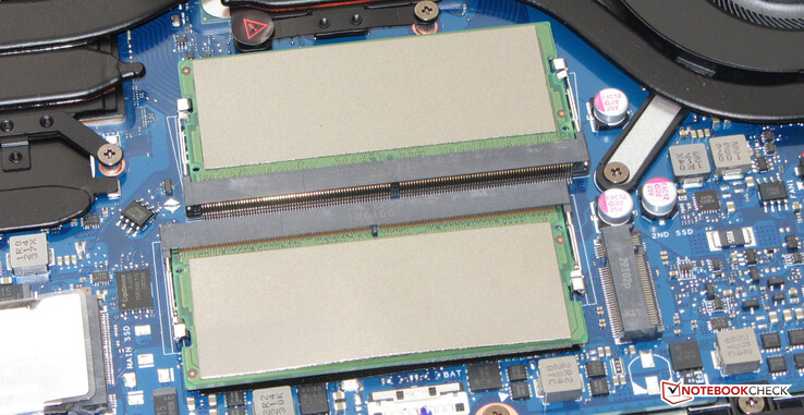 哑光QHD显示屏(15.6英寸,IPS,165赫兹)在大多数情况下给人留下了良好印象。只有亮度太低。一个Thunderbolt 4端口以对接解决方案或外部GPU的形式开辟了扩展选项。