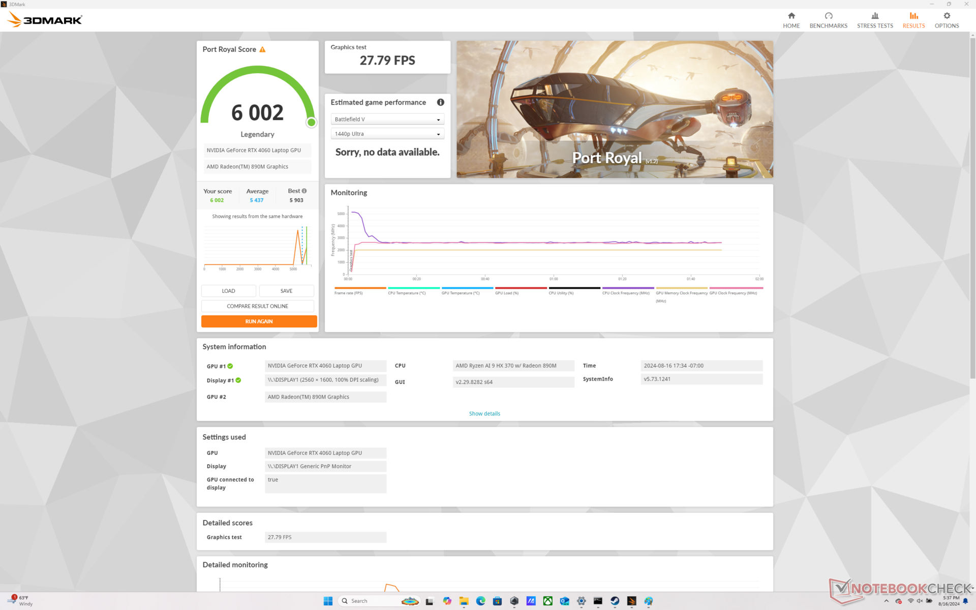 我们的测试机配备了 Ryzen AI 9 HX 370 CPU、100 WGeForce RTX 4060 GPU 和 2560 x 1600 165 Hz IPS 显示屏,售价约为 1500 美元。虽然有配置较低的 Zen 4 Ryzen 7 8845HS 可供选择,但所有选项的 GPU、显示器和 16 GB 焊接内存都是固定的。