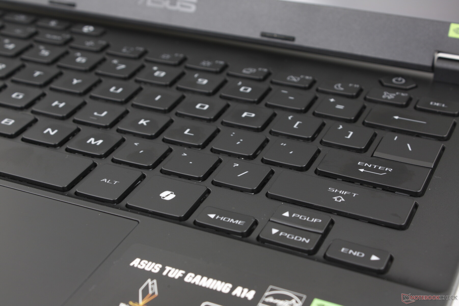 TUF Gaming A14 是更高端的 ROG Zephyrus G14系列的替代产品。虽然它可能缺少某些豪华配置,如金属键盘面板、RGB 键盘照明和 OLED 选项,但它拥有良好的端口多样性、令人惊讶的舒适键盘和非常轻的重量,可以弥补这些不足。因此,该机型非常适合那些希望拥有一台超小型游戏机,同时又能充当教室工作主力的用户。