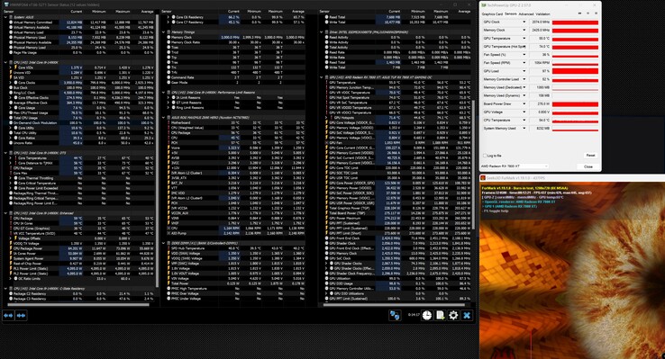 正如我们测试单元的名称所示,华硕 TUF Gaming Radeon RX 7800 XT OC 是一款在交付状态下 GPU 时钟速度略高于参考型号的显卡。在默认模式下,我们可以看到高出 90 MHz 的频率,不过这在日常操作中应该不会很明显,因为目前显卡的 Boost 速度在大多数情况下都会被超过。华硕没有修改 VRAM 的时钟速度,而是沿用 AMD 的规格。