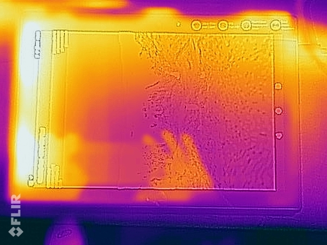 (±) The bottom heats up to a maximum of 40.1 °C / 104 F, compared to the average of 33.2 °C / 92 F