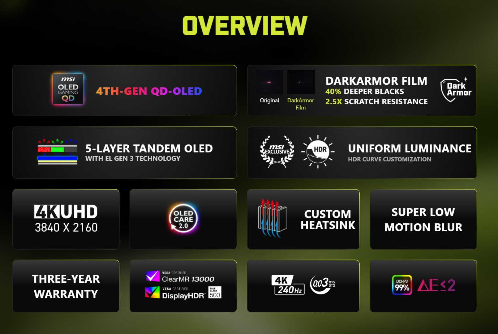 微星推出两款采用 Tandem OLED 技术的全新第四代 QD-OLED 游戏显示器