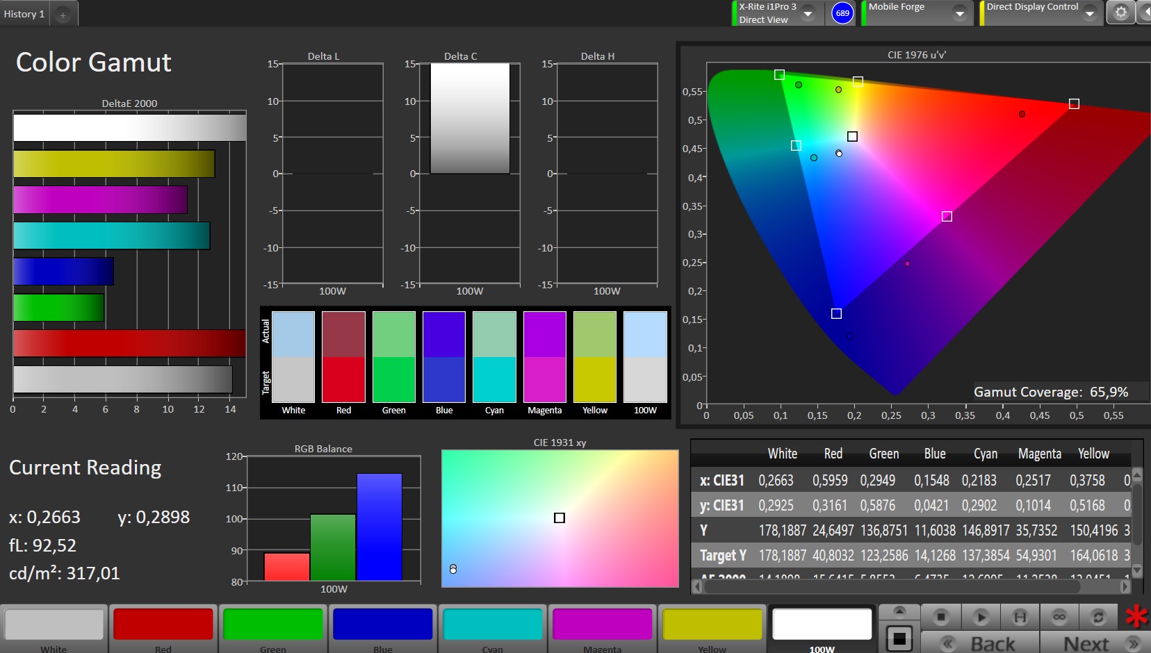 | Greyscale dE 2000 * | 11.5 | 7.1 38% | 7.1 38% | 7.9 31% | 6.2 46% |