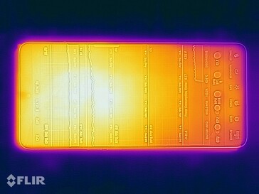 (±) The maximum temperature on the upper side is 42.3 °C / 108 F, compared to the average of 35.2 °C / 95 F, ranging from 21.9 to 247 °C for the class Smartphone.