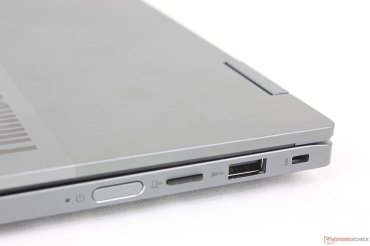 2021 年机型的所有端口在最新迭代机型上都得到了保留,只是重新进行了排列。例如,联想一键恢复按钮现在位于底部,而不是左侧边缘。此外,我们还很欣赏端口间距合理的设计,而 2021 型的端口间距更窄、更拥挤。 VivoBook Flip 14或 Aspire 5 Spin 14 的接口则更为紧凑和拥挤。