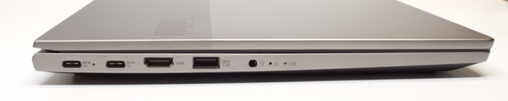 当涉及到它的端口范围时,这款办公笔记本电脑具有标准的功能。在左边,它有两个USB Type C端口,都可用于充电和图像输出。然而,这款笔记本电脑并不提供Thunderbolt。只有6000系列的AMD处理器支持通过USB 4的类似技术。