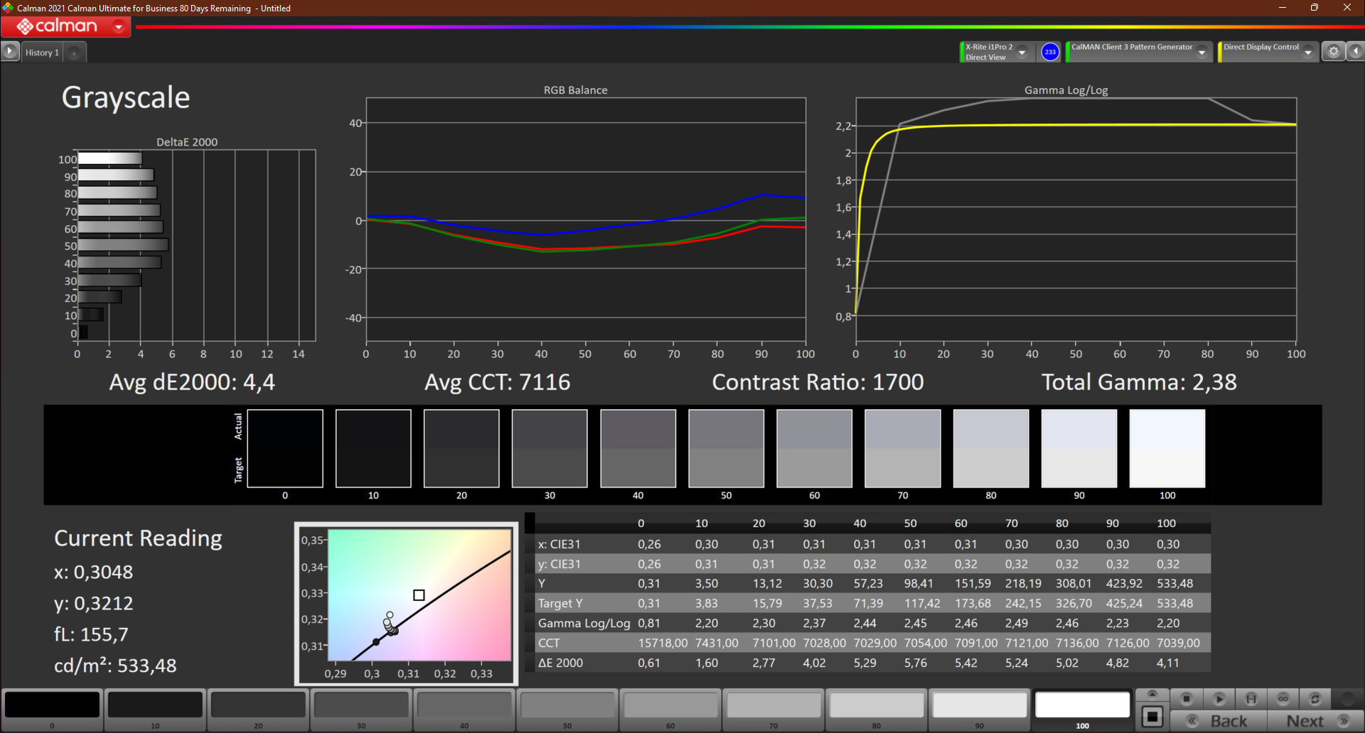 ΔE Greyscale Calman: 4.4 | ∀{0.09-98 Ø5}