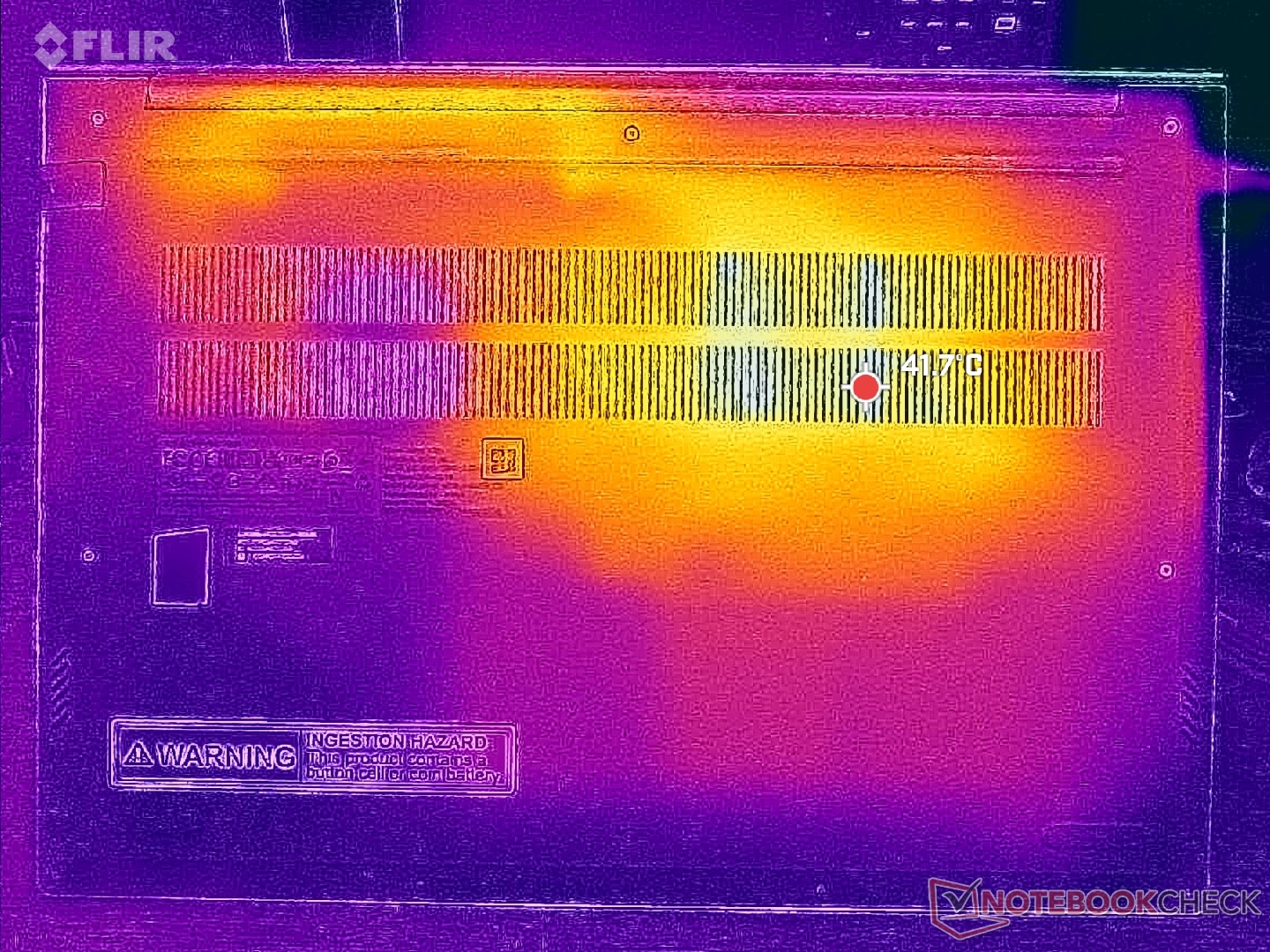 (±) The bottom heats up to a maximum of 41.2 °C / 106 F, compared to the average of 36.8 °C / 98 F