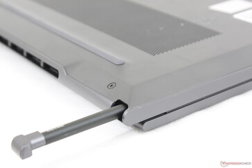 制造质量略低于Yoga或 ThinkPad X系列机型。盖子和底座更容易扭曲和吱吱作响,这可能是由于较大的17.3英寸外形尺寸和相对较薄的骨架。像较小的ZenBook Duo或较重的XPS 17这样的替代品,感觉更结实,特别是在铰链方面,感觉更牢固。