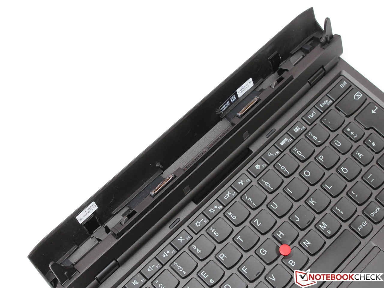 The connection between the display and the dock has been the subject to much fine-tuning, as the quality-spoilt business customers of the ThinkPad series would expect, trying to find the sweet spot between maximum flexibility, great ergonomics and stability, a ThinkPad strength. Luckily, the manufacturer has managed to solve this problem rather well: The tablet can easily be removed with a simple push on a lever and be re-attached without hassle as well - even reversed by 180 degrees, if this is required. Unfortunately, the display wobbles slightly in its holder, but not enough to become noticeable during actual usage. Apart from this one minor quirk, everything about the construction seems well-designed and extremely sturdy.