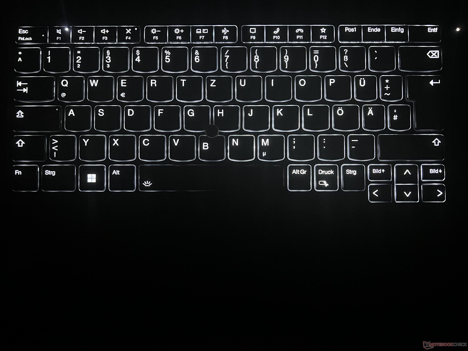 去年的 ThinkPad E14 G4是最后几款仍在使用键程为 1.8 毫米的出色键盘的机型之一。现在,新机型采用了我们从许多其他 ThinkPad 上了解到的 1.5 毫米键程的劣质键盘。键盘并不差,但就是不如旧款,也不比竞争对手好多少。键盘采用两段式白色背光,适用于黑暗环境。