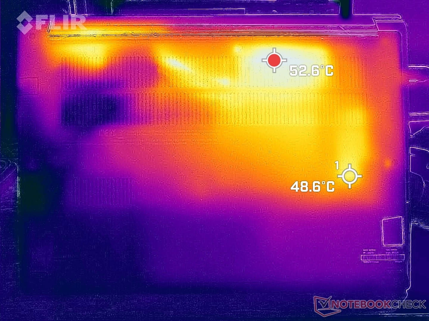 (-) The bottom heats up to a maximum of 50.8 °C / 123 F, compared to the average of 36.8 °C / 98 F